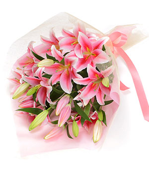 - 花材:10枝粉色多头香水百合 。